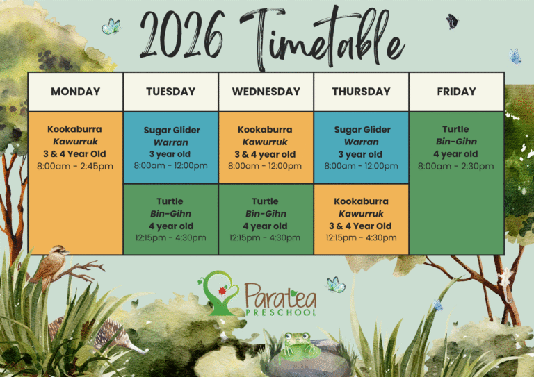 Please find below our 2026 timetable, our group names were chosen by our 2025 families and children.
